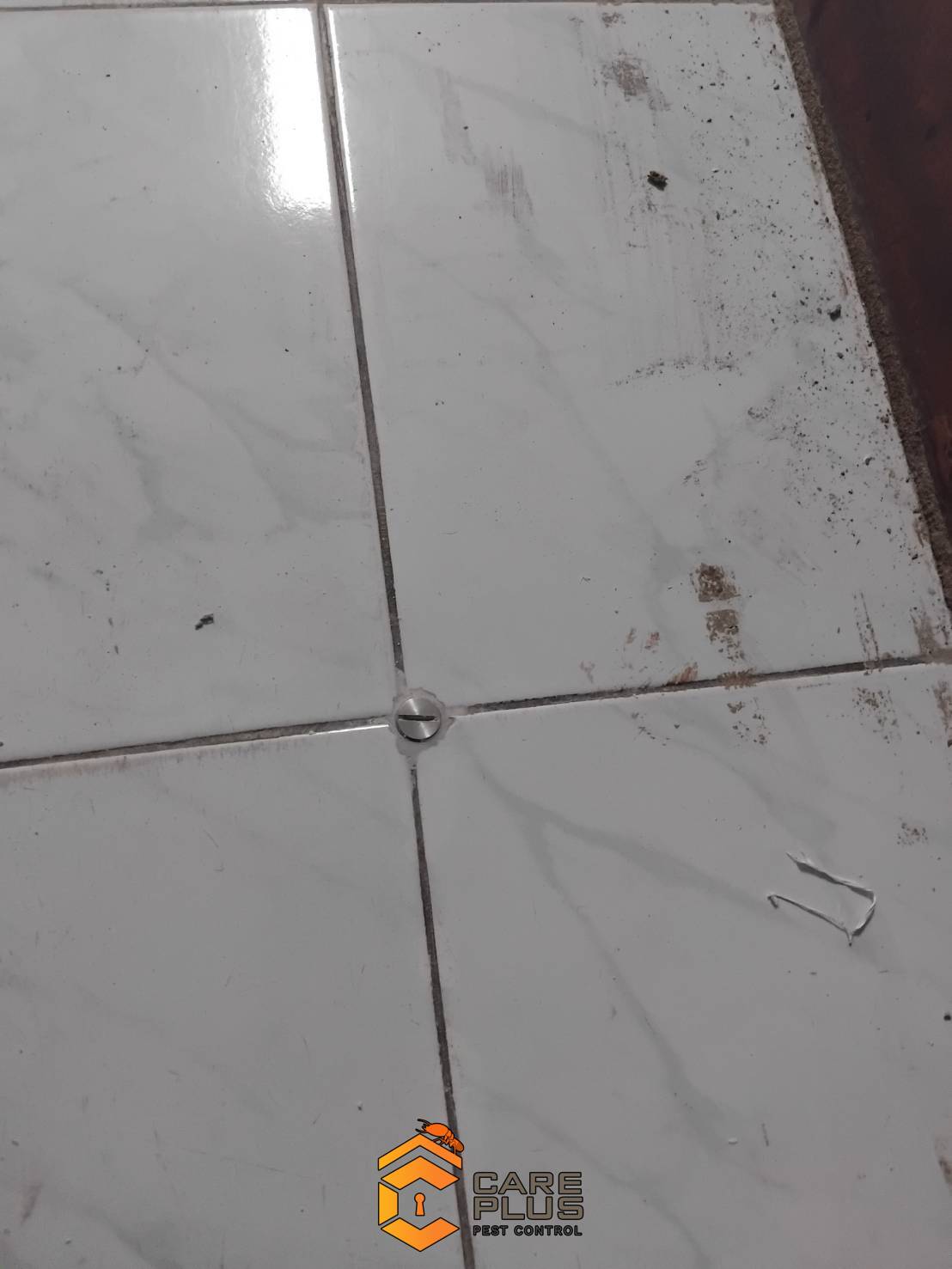 เจาะพื้นชั้นล่าง (รูเจาะขนาดประมาณ เหรียญ 50 สต.) บริเวณมุมห้องทั้งหมด เพื่ออัดน้ำยาลงดิน หลังจากนั้นจะทำการอุดรูที่เจาะด้วยไม้ (หากพื้นเป็นปาร์เก้ ) และปูนยาแนว แต่งสีใกล้เคียงสีจริง หากเป็นพื้นกระเบื้อง / แกรนิต / หินอ่อน หากสามารถขุดเข้าใต้ถุนบ้านได้