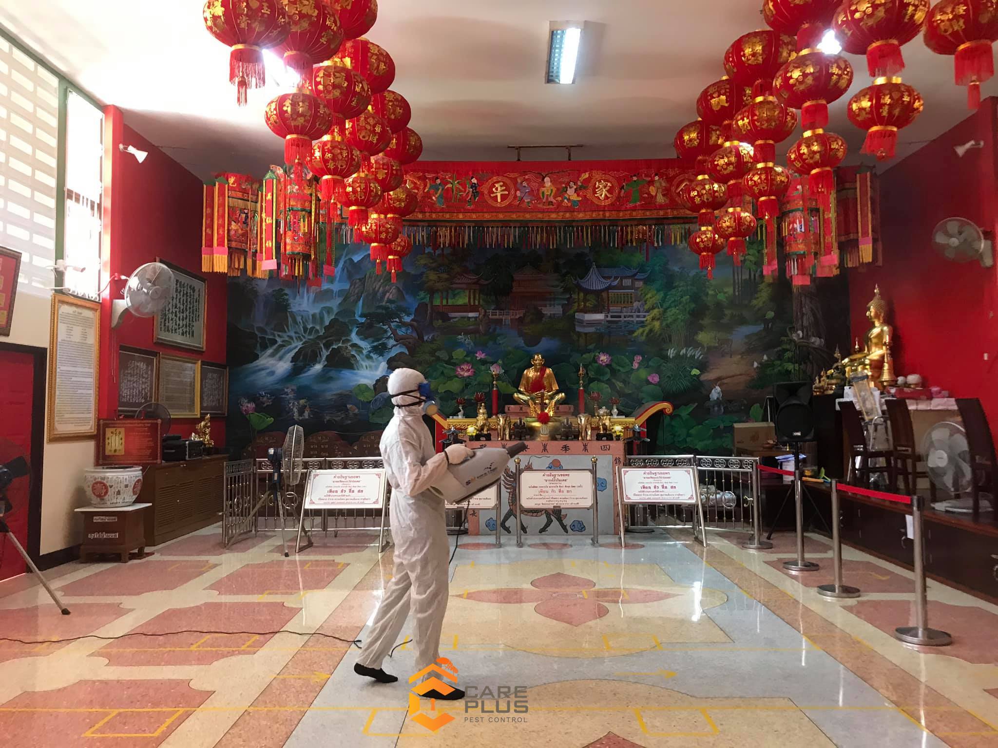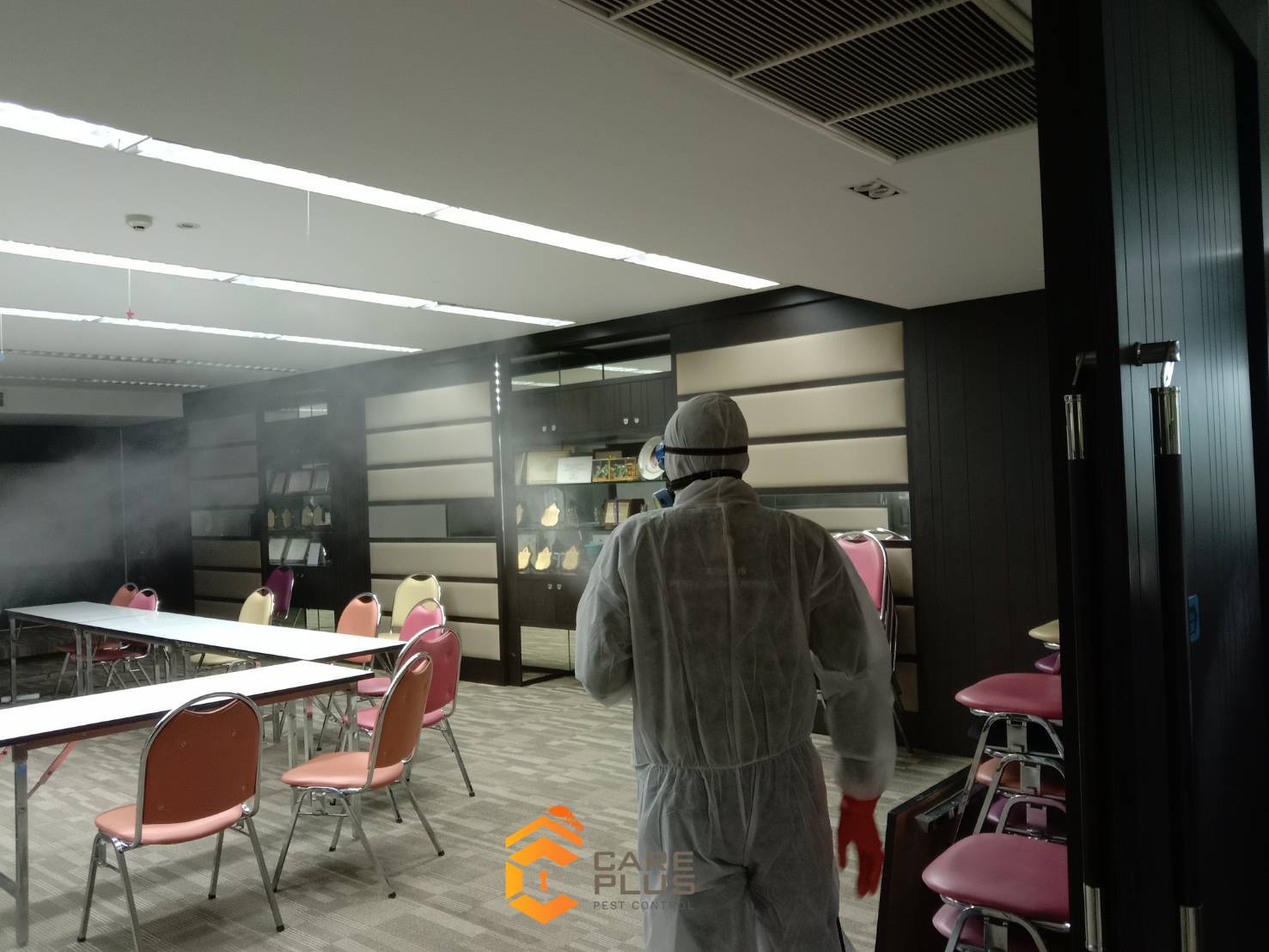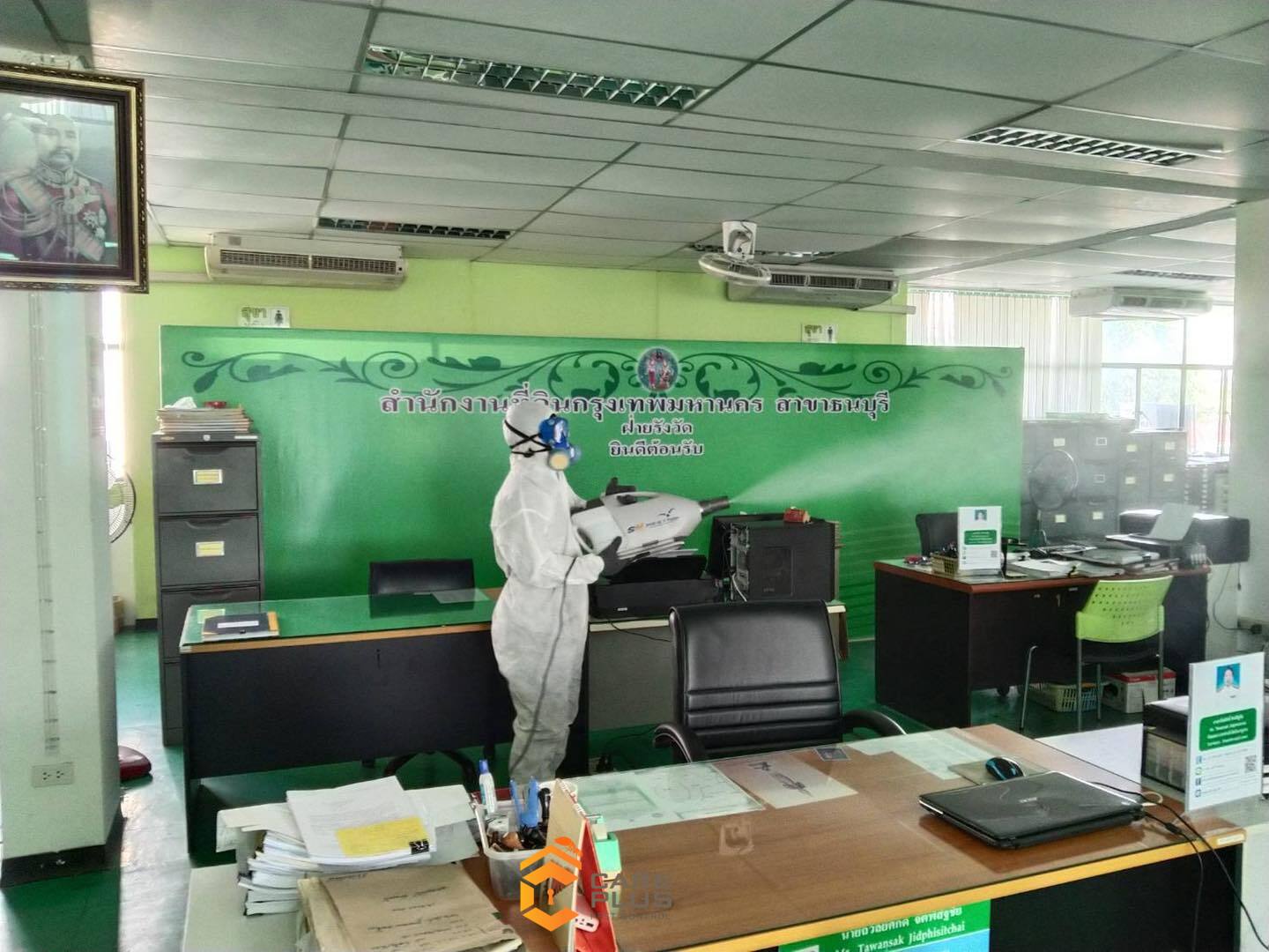 ขั้นตอนที่ 3 : พนักงานจะดำเนินการพ่นฆ่าเชื้อ ด้วยการพ่นละอองน้ำฝอย ด้วยเครื่องพ่น ULV (ตัวเครื่องจะกระจายน้ำยาฆ่าเชื้อที่มีอนุภาคขนาดเล็ก เข้าสู่บริเวณที่ยากต่อการเข้าถึง เช่น บริเวณขอบมุม มุมอับของพื้น และซอกต่างๆ)